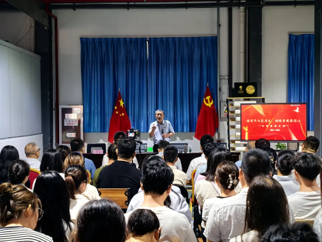 6月20日,海南橡膠黨委書記、董事長(zhǎng)王宏向?yàn)榘不涨貦阪?zhèn)愛德福公司乳膠發(fā)泡加工廠生產(chǎn)車間的70余名干部員工講授“讀百年大黨歷史,樹改革發(fā)展信心” 專題黨課。